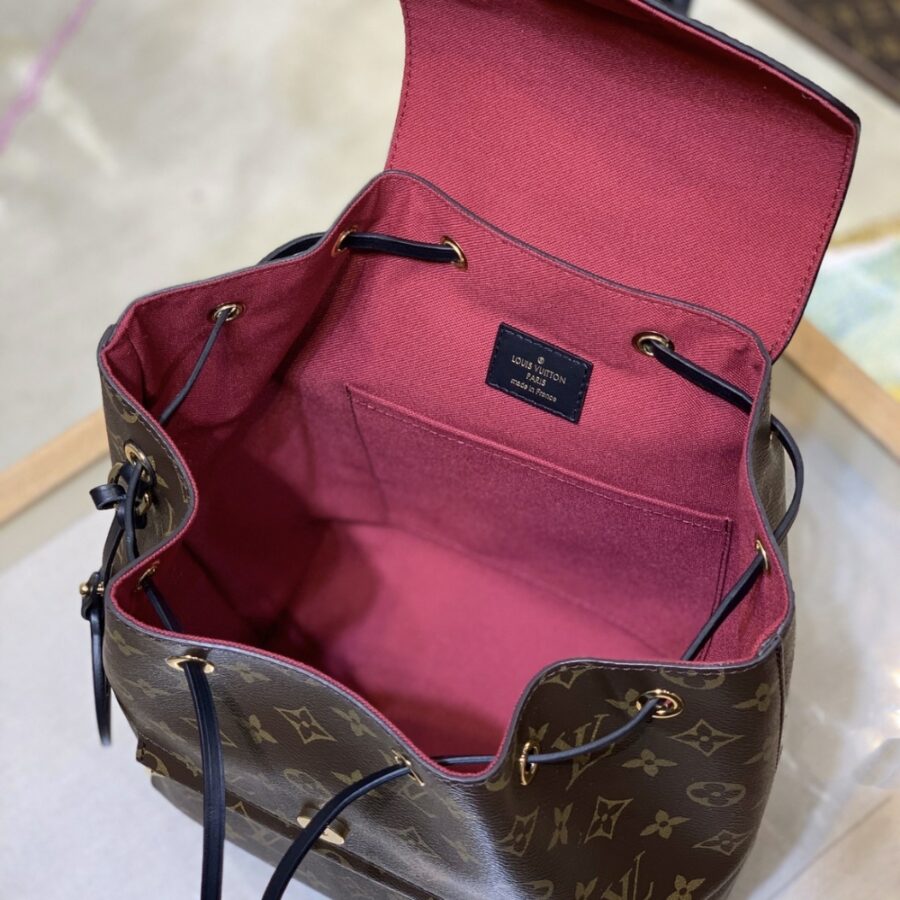 The Louis Vuitton Montsouris PM is a stylish backpack that reimagines a classic 1994 design with modern black leather trim and iconic Monogram canvas. It features a secure magnetic buckle closure and a practical leather drawstring that opens to a spacious interior with an additional open pocket. This compact yet functional accessory is completed with an outside zipped pocket, making it a perfect choice for sophisticated daily use.