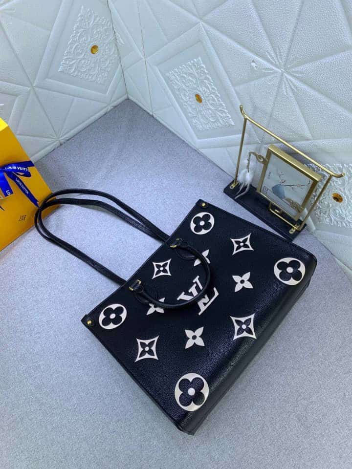 Louis Vuitton Onthego MM Bicolor Monogram Empreinte Leather Black Beige M45495 / 35cm / 13.8 inches