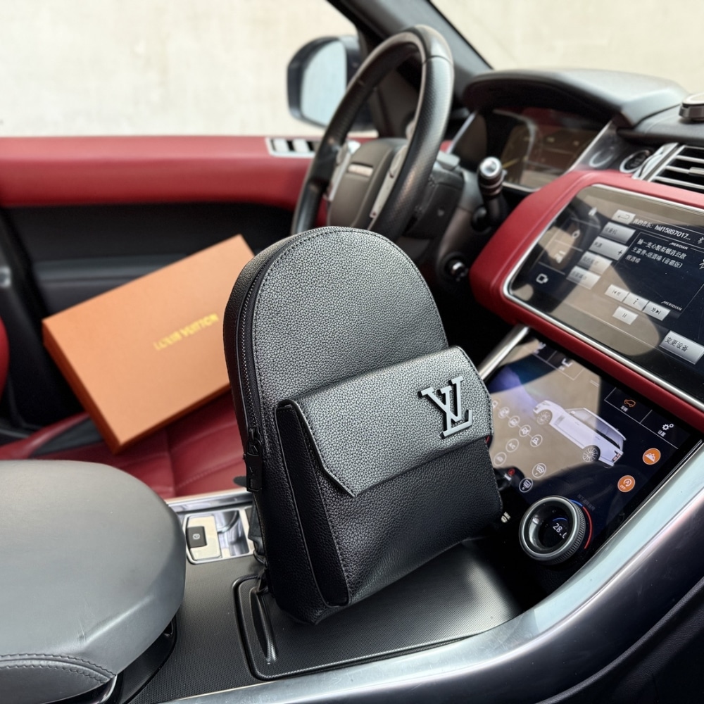 Inspired by the famous Takeoff backpack, the Pilot sling bag features a rounded shape, a front flap, and exclusive details from the LV Aerogram collection. The magnetic closure provides quick access to your belongings while keeping them secure. The adjustable strap can be worn on either the right or left side of the bag.