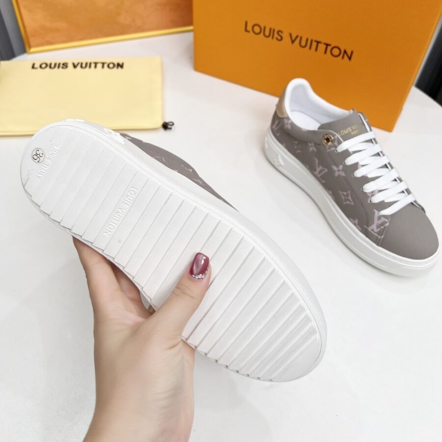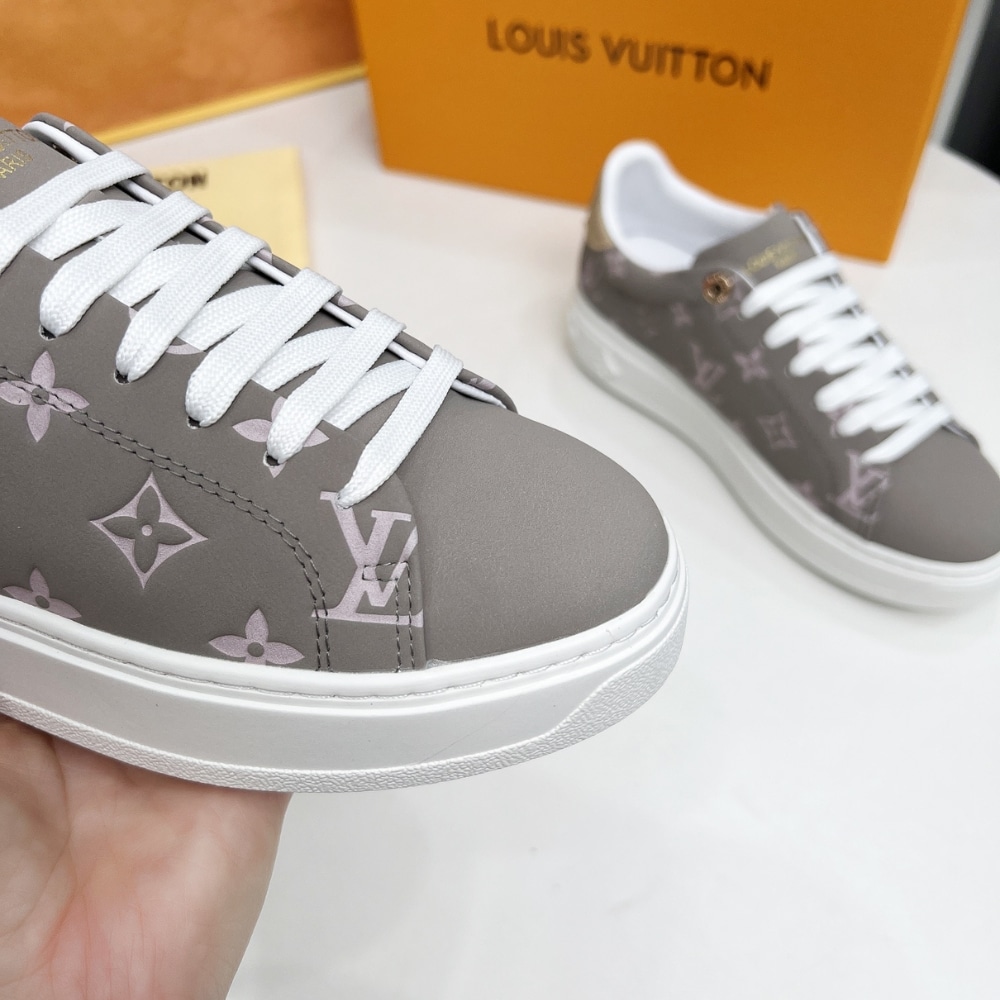 The Time Out sneaker is revisited this season in all-over Monogram denim for a casual-chic look. One of Louis Vuitton’s emblematic styles, this model is notable for its chunky yet lightweight rubber outsole, which is decorated with Monogram Flowers. White laces and engraved, gold-tone eyelets complement this design.