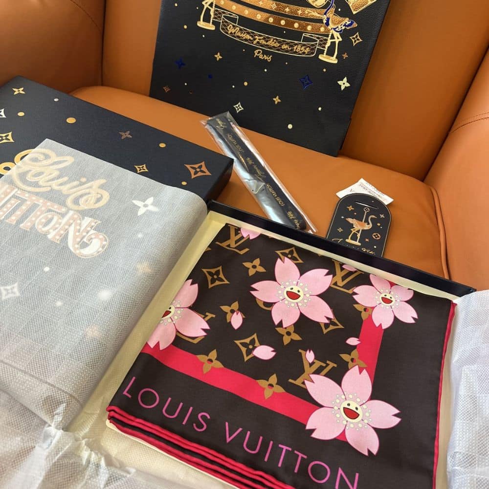 Louis Vuitton X Takashi Murakami Monogram Cherry Blossom Square Sakura Brown 90cm M96102