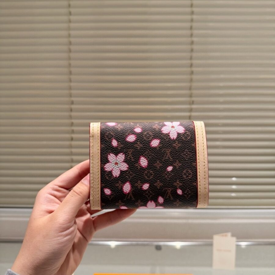 This petite Victorine wallet is inspired by the beloved reissue of the Louis Vuitton x Murakami collaboration. Its playful design is both functional and vibrant, radiating captivating energy with its striking colors. Crafted from Monogram coated canvas and adorned with a Cherry Blossom pattern, showcasing the unique and colorful style of Japanese artist Takashi Murakami, the wallet is perfectly complemented by natural cowhide trim.