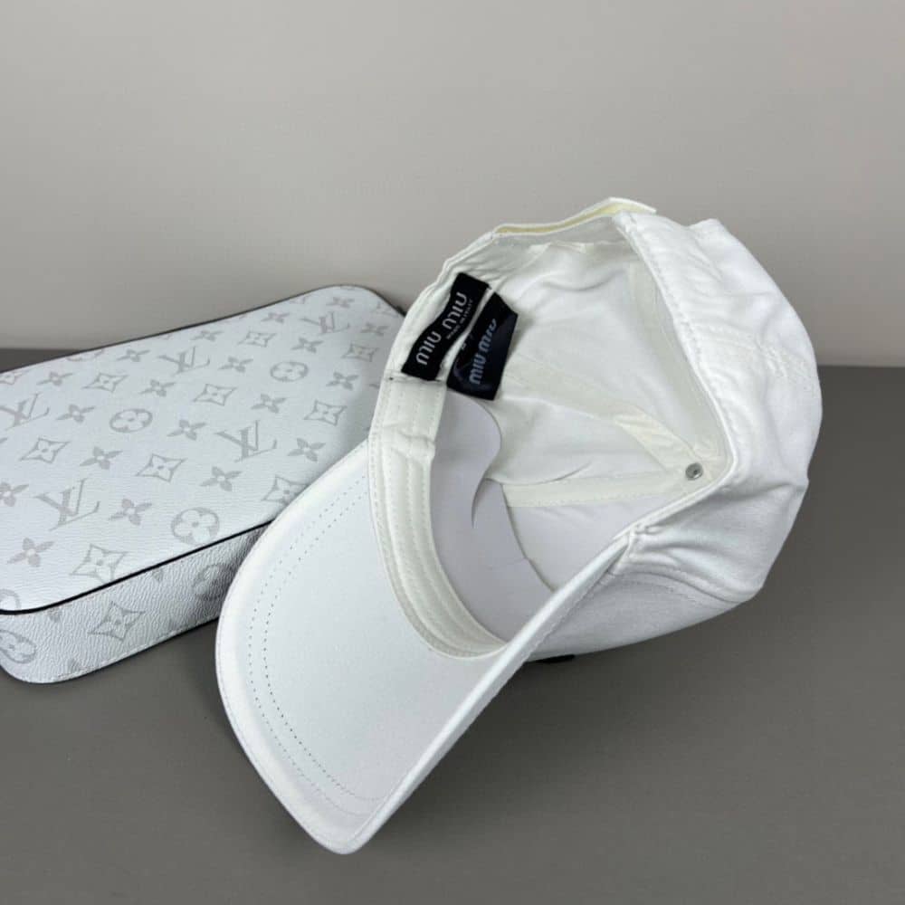 MiuMiu Drill Baseball Cap White 5HC179 2DXI F0964