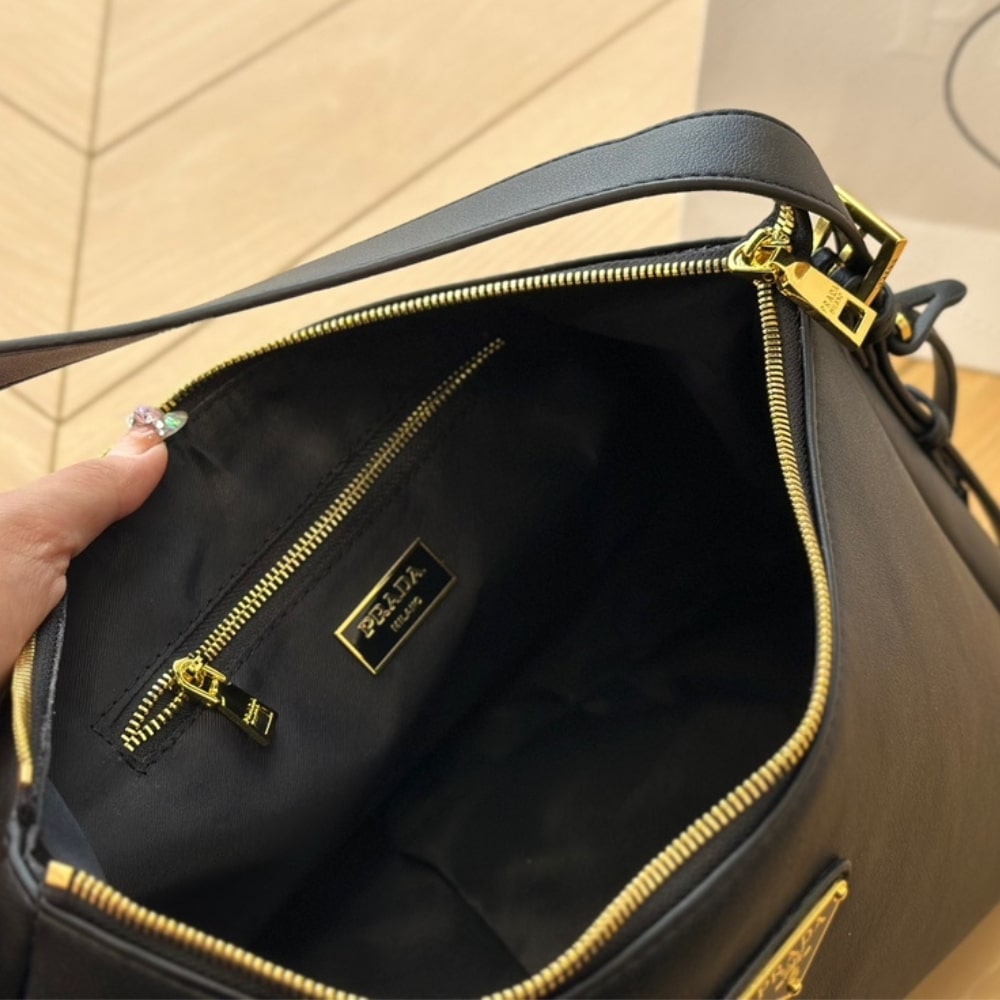 Prada Aimée Large Leather Shoulder Bag Black 39Cm 1Bc228 2Cys F0002 V Lvm