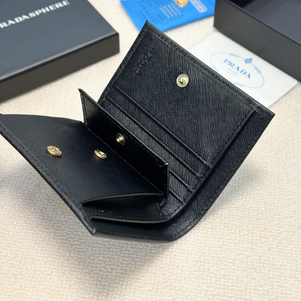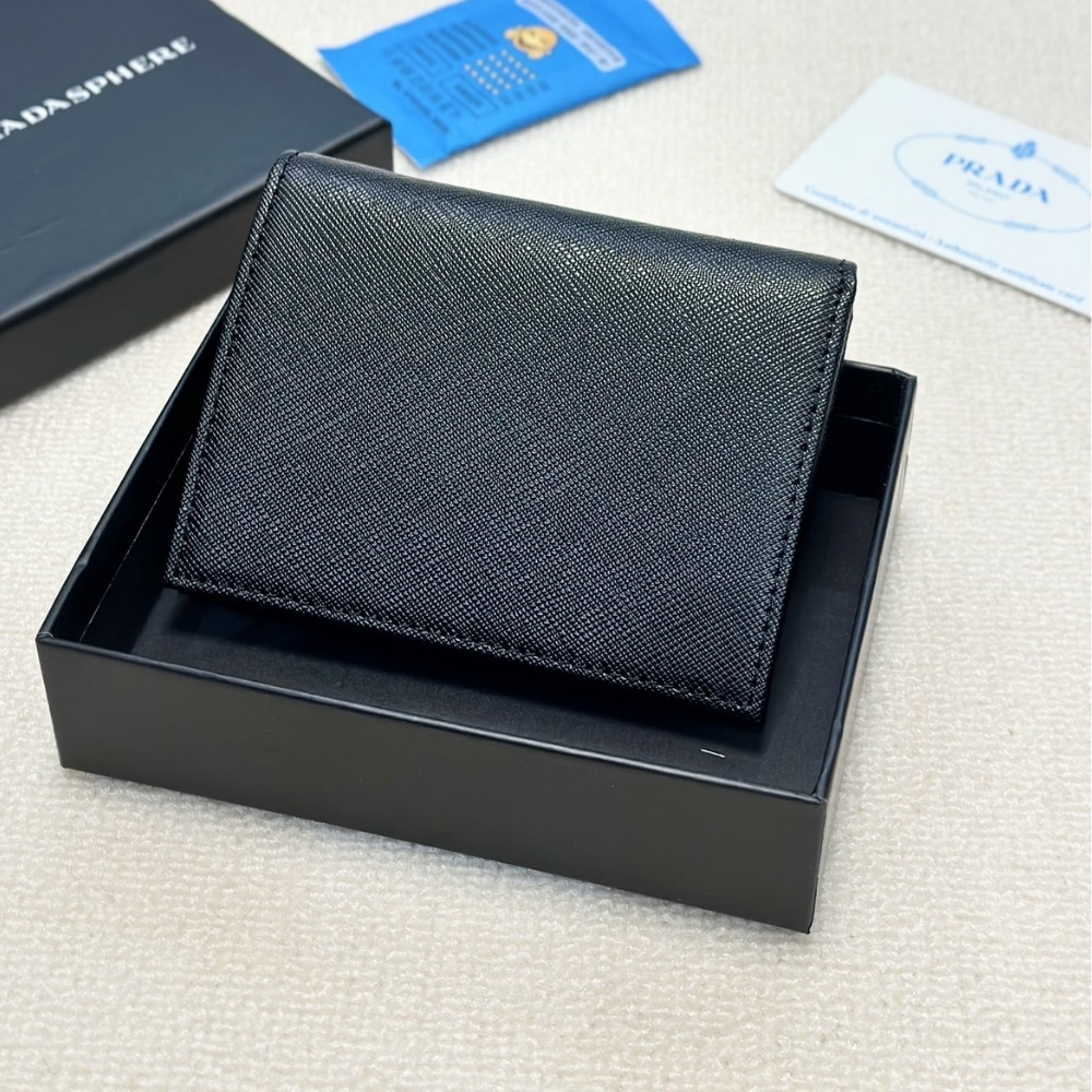 Prada Bifold Saffiano Leather Wallet Black 11Cm