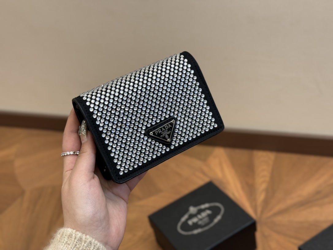 Prada //Cardholder With Shoulder Strap And Crystals //13cm
