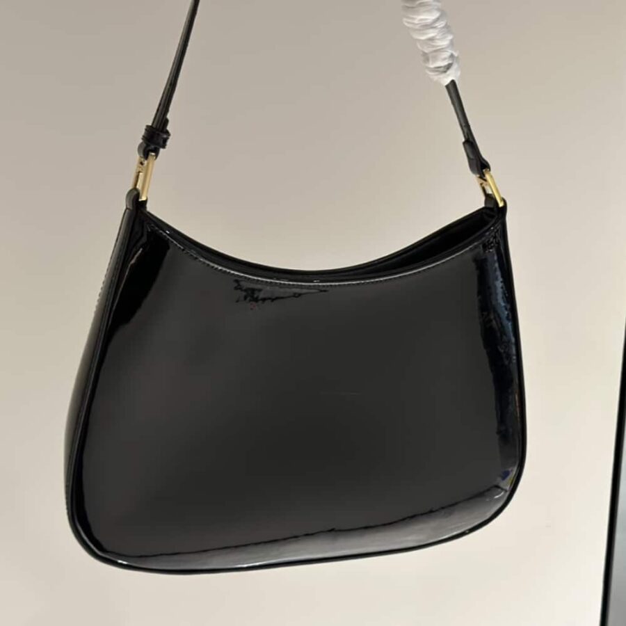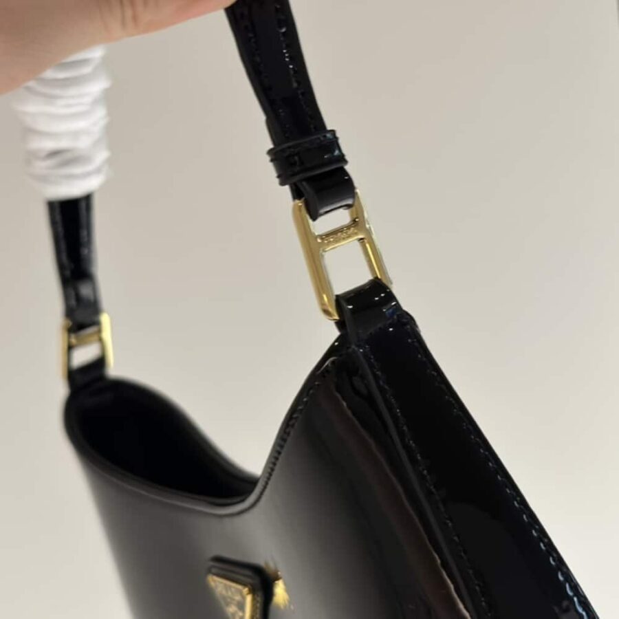 Prada Cleo Patent Leather Bag Black 1BC169 069 F03KJ V HOO 27 cm / 10.6 inches