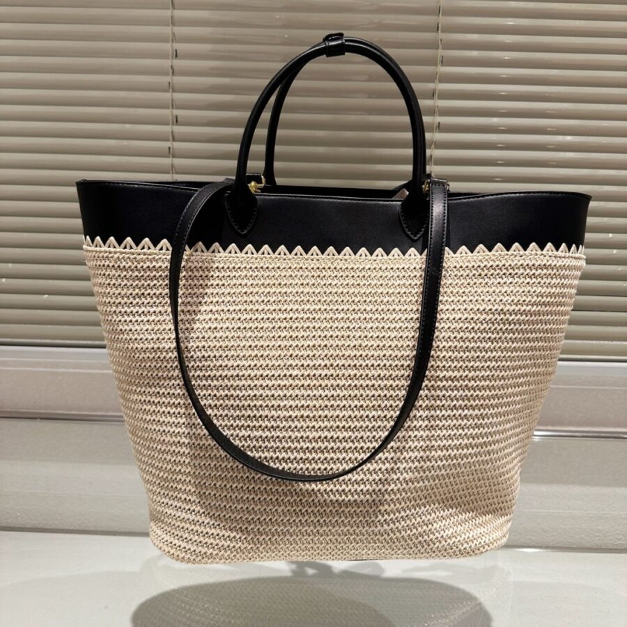 Prada//Crochet And Leather Tote Bag//Tan And Black//33cm//1BG499 2M2Q F0I55 V GOO