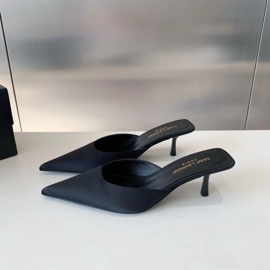 Saint Laurent Barbara Mules Satin In Black 7869079Qn001000