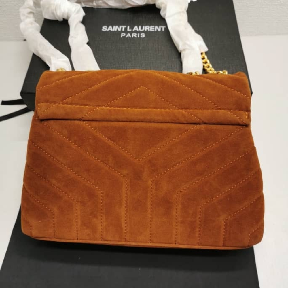 Saint Laurent Cinnamon Loulou Medium Chain Bag In Suede Brown 23 cm / 9 inches