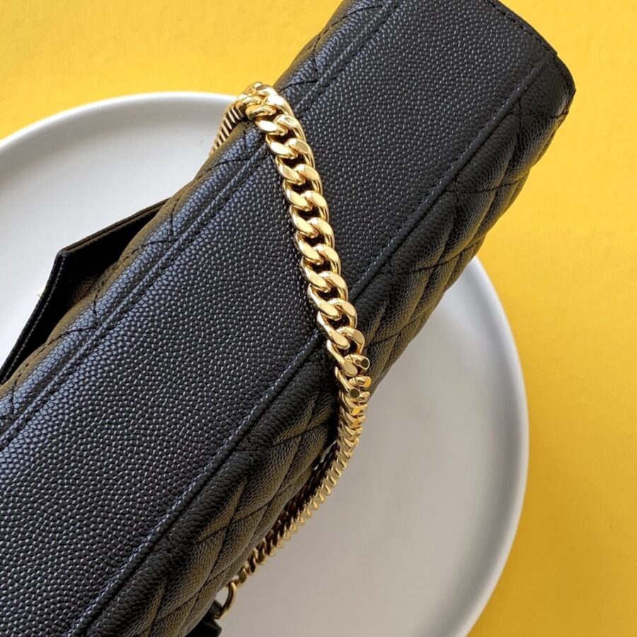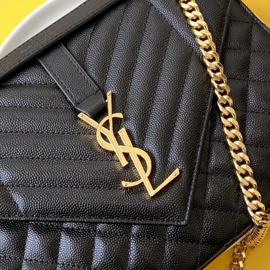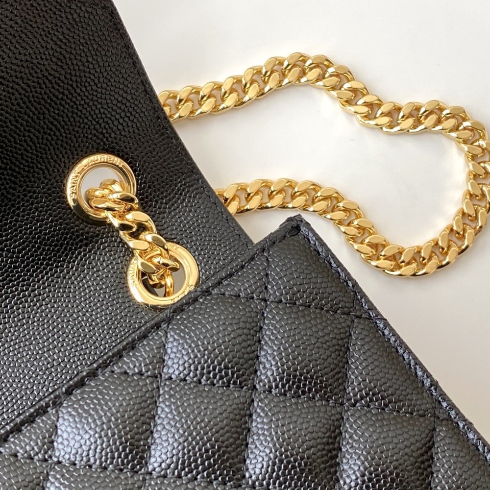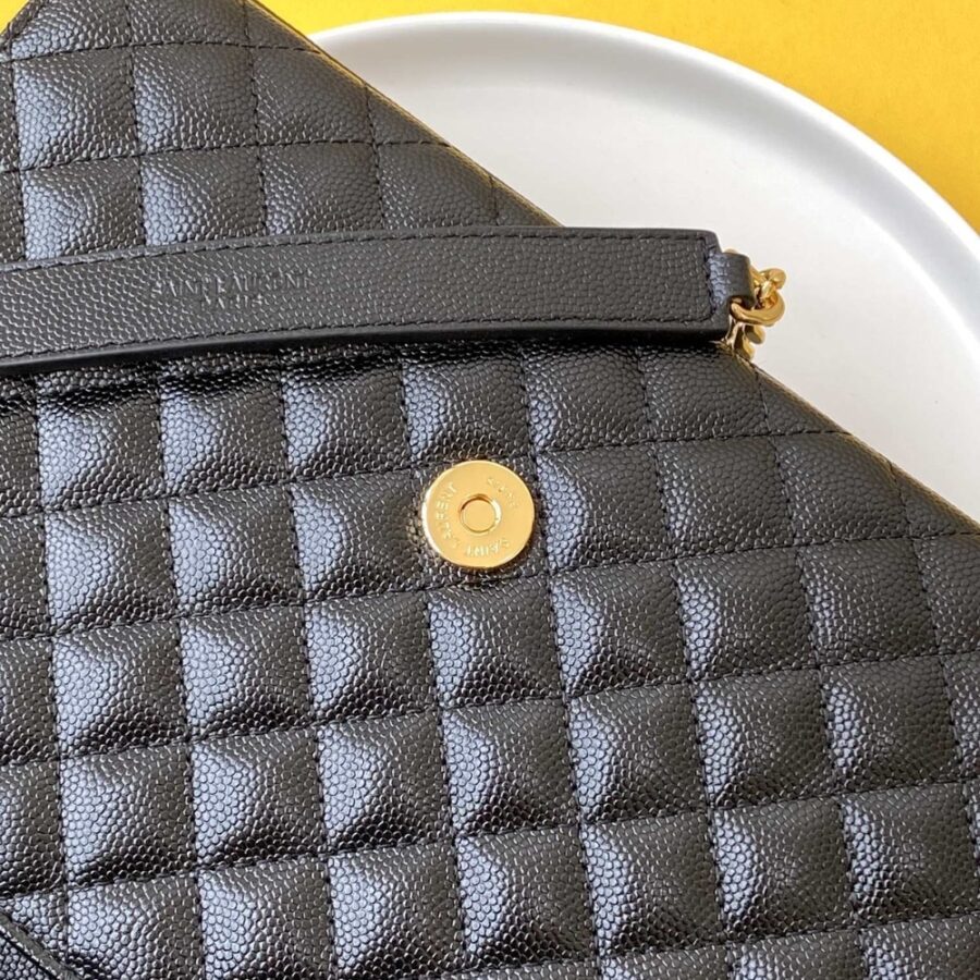Saint Laurent Envelope Medium In Quilted Grain De Poudre Embossed Leather Black Gold 600185BOW911000 / 24cm / 9.4 inches