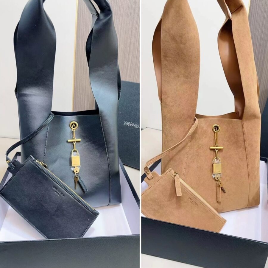 Saint Laurent Leather Shoulder Bag With Padlock Detail Black 27 cm / 10.6 inches