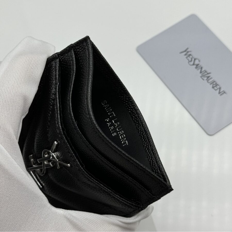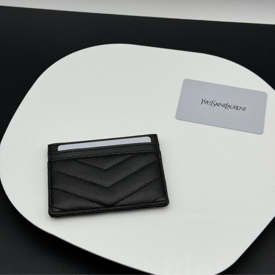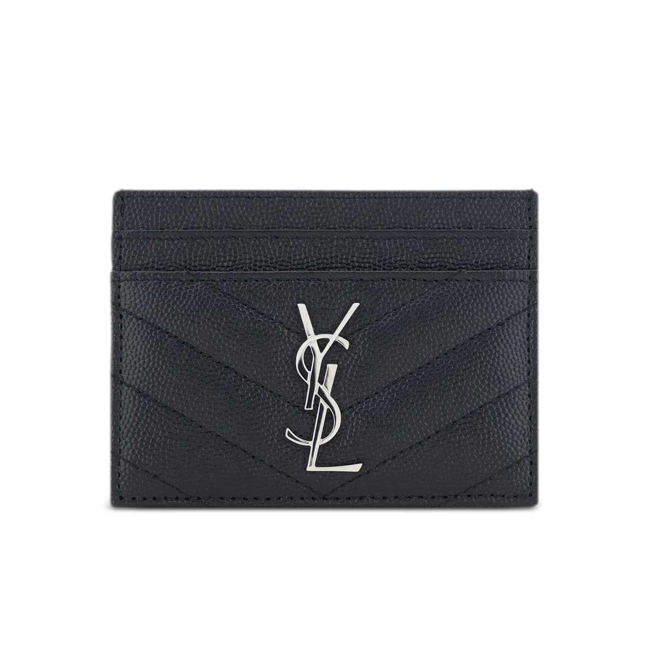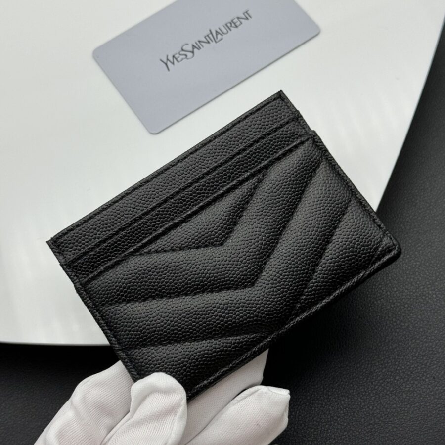 Saint Laurent Wallet Chevron And Logo Card Holders Black 10Cm