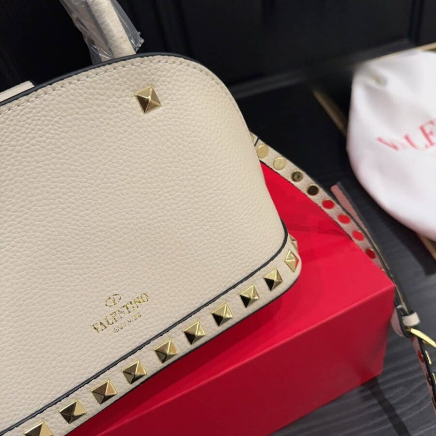 Valentino Garavani Rockstud Handbag In Grainy White 21 cm / 8.3 inches
