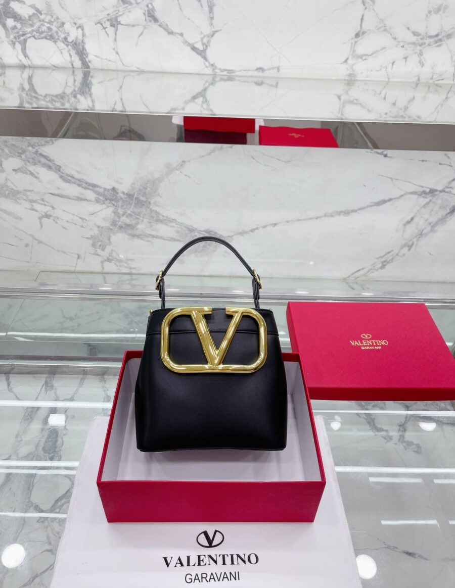 Valentino Garavani Supervee Leather Bucket Bag Black 20Cm