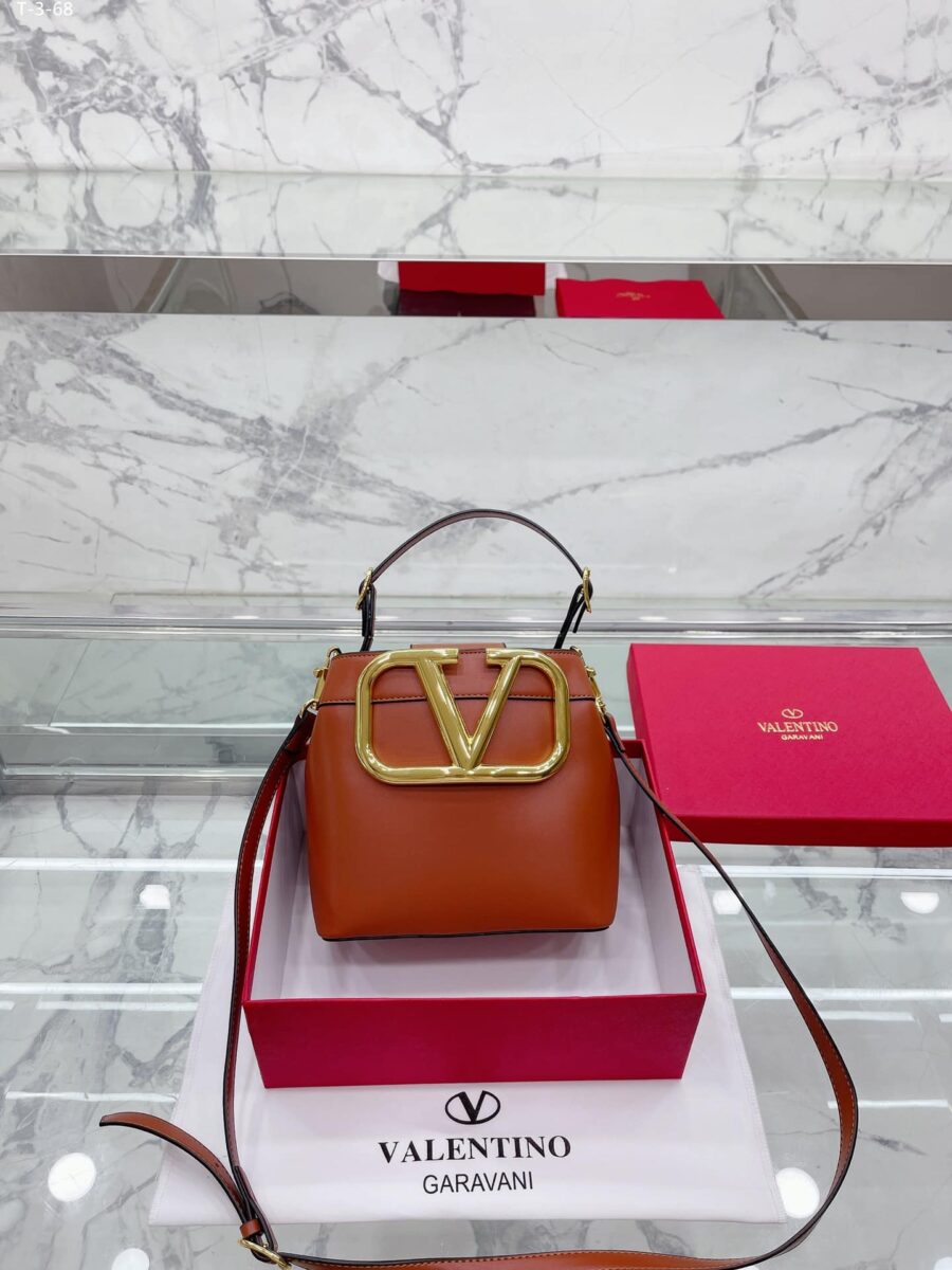 Valentino Garavani //Supervee Leather Bucket Bag //Brown //20cm