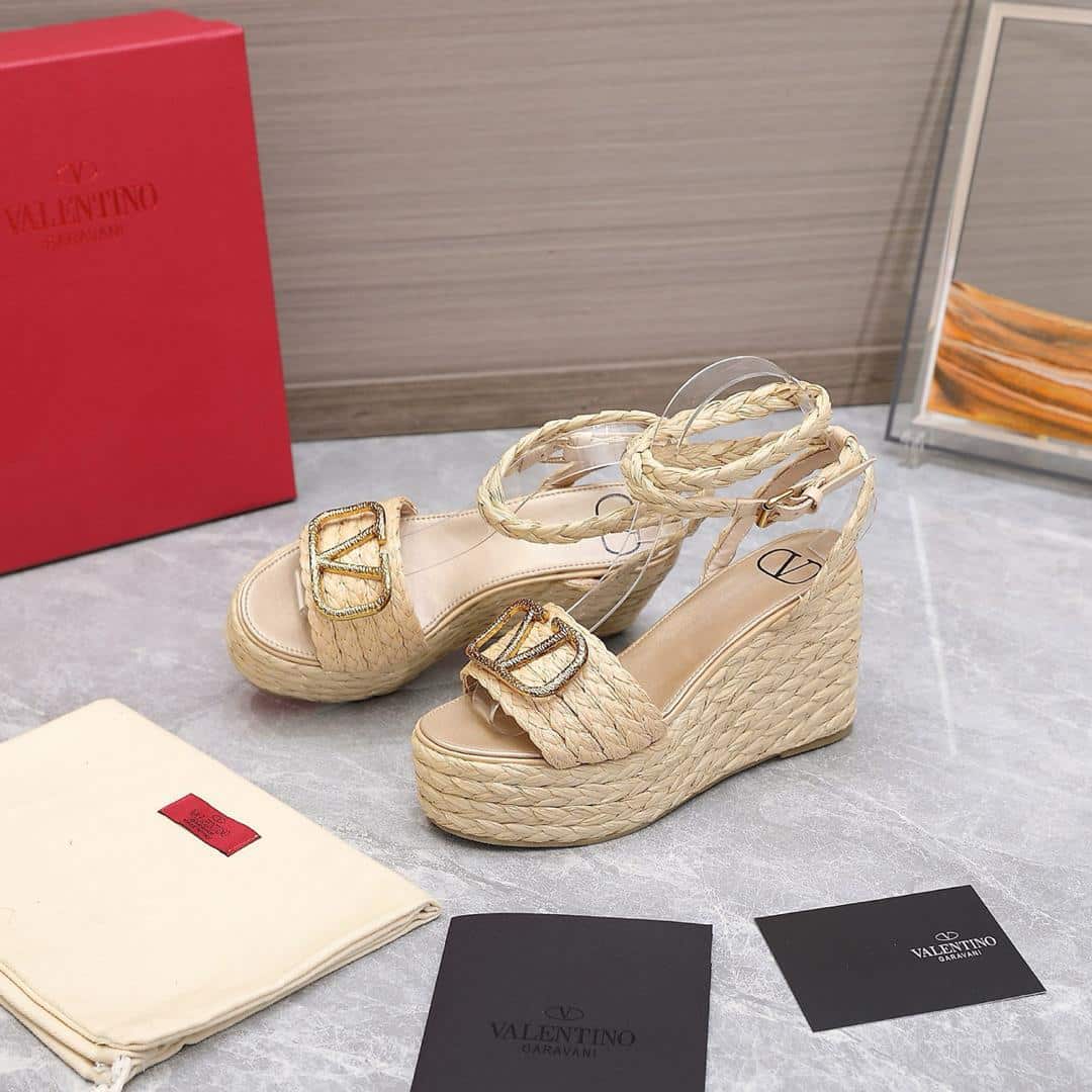 - Valentino Garavani Rockstud wedge in laminated nappa leather