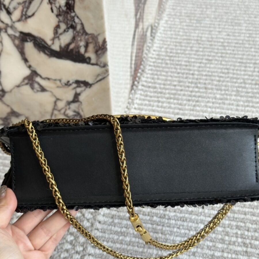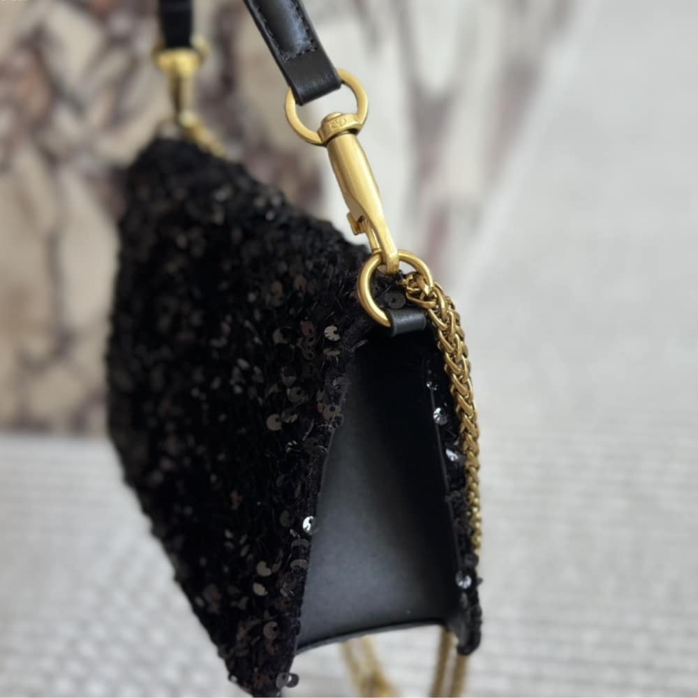 Valentino Loco Small Vlogo Sequins Shoulder Bag Black 26cm/10.2in