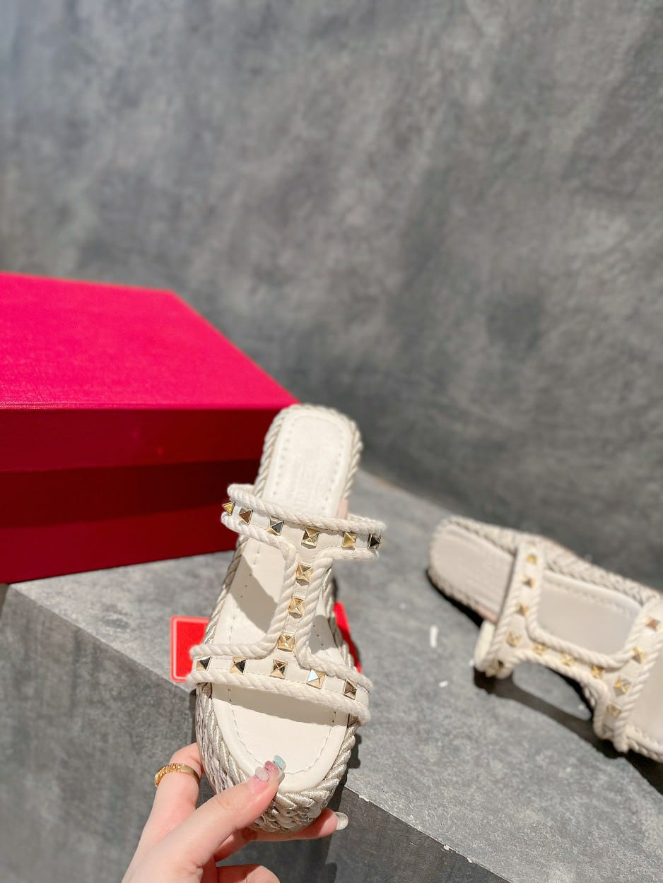 - Wedge heel covered in silk and metallic thread cord