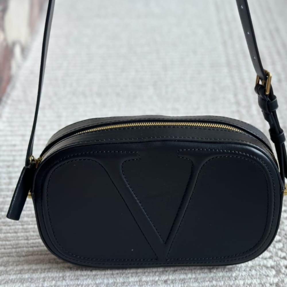 Valentino Vlogo Walk Leather Crossbody Bag Black 25Cm